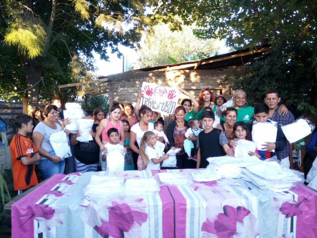 OTRANS Malvinas Argentinas comenzaron a hacer un trabajo social con los niños y ancianos de los barrios mas carenciados y olvidados por el municipio para de esa manera también educar y sumar luchas a nosotras las Trans y Travestis . Vicky Izquierdo dijo: “Empezamos a repartir guardapolvos y este próximo miércoles estaremos con 50 chicos mas de otro barrio de malvinas argentinas. El impacto de la gente hoy fue muy bueno y nos agradecieron y se sumaran a nuestra lucha colectiva”