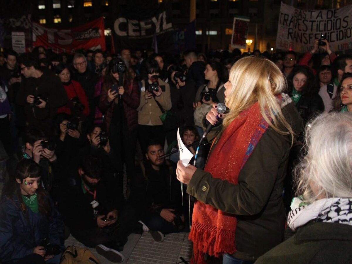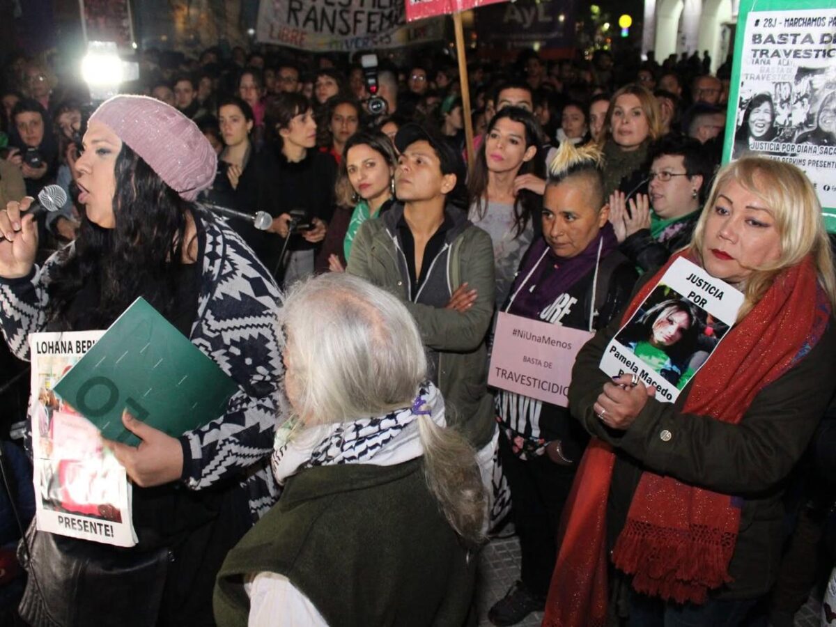 Las calles de Buenos Aires sintieron la verdadera reivindicación de los derechos. La gente congregada con más de 4 calles de columnas vivió en primera persona lo que es la resistencia trans, travesti, trava. Luego del gran hito en la historia del movimiento trans y travesti argentino y de Latinoamérica, con el fallo judicial a favor de Diana Sacayán, declarando a David Marino como asesino intelectual, bajo la figura legal del travesticidio social. Sentó jurisprudencia a favor de nuestro colectivo, por homicidio a una persona travesti, que considera el agravante de la violencia y odio a la identidad o expresión de género. A lo largo de la tarde/noche, varixs activistas y militantes de diferentes espacios políticos y sociales, concentraron en Plaza de Mayo, donde se llevaron a cabo intervenciones artísticas que dieron la antesala a la marcha. En ella se materializó la construcción de un espacio de unidad, conducido y liderado por nuestro colectivo. En Argentina la identidad travesti y trans fue considerada un delito. Miles de personas fueron encarceladas, maltratadas, violentadas y discriminadas por las fuerzas de seguridad por el mero hecho expresar su género no normativo. Por ello, en esta III Marcha Nacional tuvo un tinte político muy grade. Encarnando las denuncias populares, exigiéndole al gobierno de Mauricio Macri, y María Eugenia Vidal, que generen políticas públicas a favor de nuestro movimiento y que implemente ya el cupo/inclusión laboral trans. Claudia Vásquez Haro, expuso “Hoy es un día histórico. No tenemos que ponernos a discutir entre abolicionismo y regulacionismo, sino defender a las personas trans y travestis en todos los ámbitos. Aún más las que no pueden salir de la prostitución y quieren. Hubo un retroceso exponencial en relación a nuestros derechos humanos. El que nos persigue y mata es el Estado” En la actualidad, solo en la Unidad penitenciaria N ° 32 de Florencio Varela están privadas de su libertad 46 compañeras. Hasta diciembre de 2015, eran 33. Hoy incrementó de forma exponencial, más de un 100%. Esto debido a las razias policiales que se dan de forma violenta y recurrente, los armados de causa por la ley 23737 (ley de drogas). La gran diferencia con el actual gobierno es que durante el kirchnerismo no habían matado a ninguna compañera en situación de encierro, y tampoco había faltantes de medicamentos para el VIH y otras enfermedades crónicas. Para hablar de violencia, primero hay que dejar los privilegios de lado. Violencia es no tener trabajo, que comer, estar parada en una esquina prostituyéndote en este frio de invierno. Violencia es el incremento de los travesticidios y transfemicidios, torturas y muertes de compañeras trans y travestis. Violencia es que organizaciones hegemónicas de la diversidad sexual transen con el macrismo, tapen y silencien lo que le pasa a nuestras compañeras.