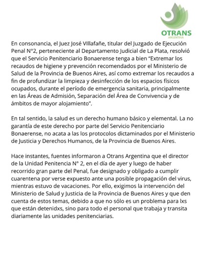 En el marco de la campaña solidaria “Nos cuidamos entre todes”, nuestra coordinadora de la filial CABA, Jem Rodríguez, continuó con el arduo trabajo que viene realizando OTRANS ARGENTINA para la construcción de redes de solidaridad y llevar a cabo una política del cuidado.