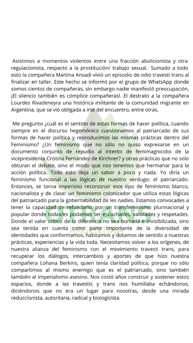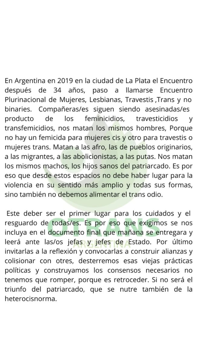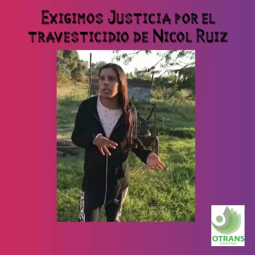 Desde OTRANS ARGENTINA expresamos a sus familiares, y amiges nuestro más sentido pésame y el profundo dolor por el travesticidio de nuestra compañera Nicol Ruiz. Asimismo, exigimos justicia teniendo en cuenta el agravante por odio a la identidad de género auto-percibida. Nicol era sostén de hogar, madre de dos niñes, quienes tras su muerte quedan sin su protección. Se torna imprescindible, ser parte de la agenda emocional de nuestro país y que la sociedad se enlute y horrorice cuanto nos matan a una compañera Travesti trans.