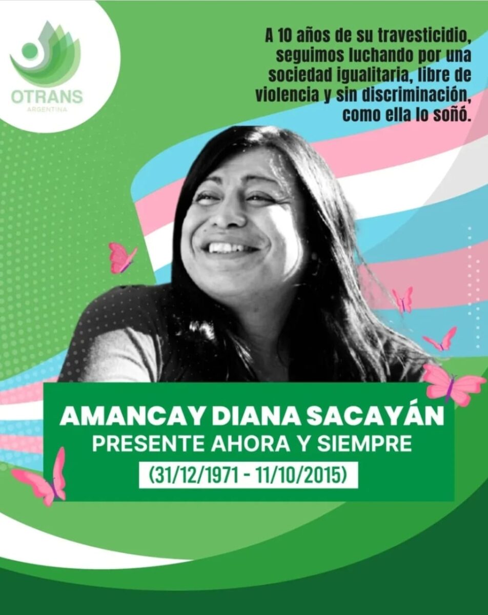 Desde Otrans Argentina reafirmamos que el legado de Diana vive en cada lucha travesti-trans, en cada espacio conquistado, en cada compañera que resiste. No hay libertad posible mientras nuestros cuerpos sigan siendo blanco del odio. Frente al avance del fascismo, respondemos con memoria, organización y lucha.